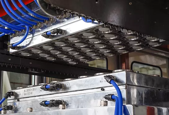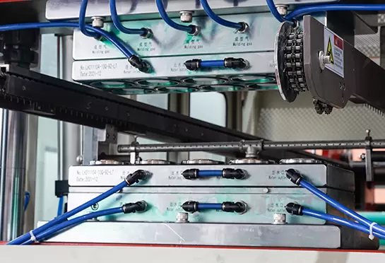 เซอร์โวมอเตอร์แบบยืดหดของ YASKAWA (ประเทศญี่ปุ่น) ควบคุมความเร็วของแม่พิมพ์บนและล่าง ซึ่งสามารถรักษาความแข็งแรงที่สม่ำเสมอเพื่อให้แน่ใจว่าความหนาด้านล่างของแต่ละถ้วยเท่ากัน และเซอร์
