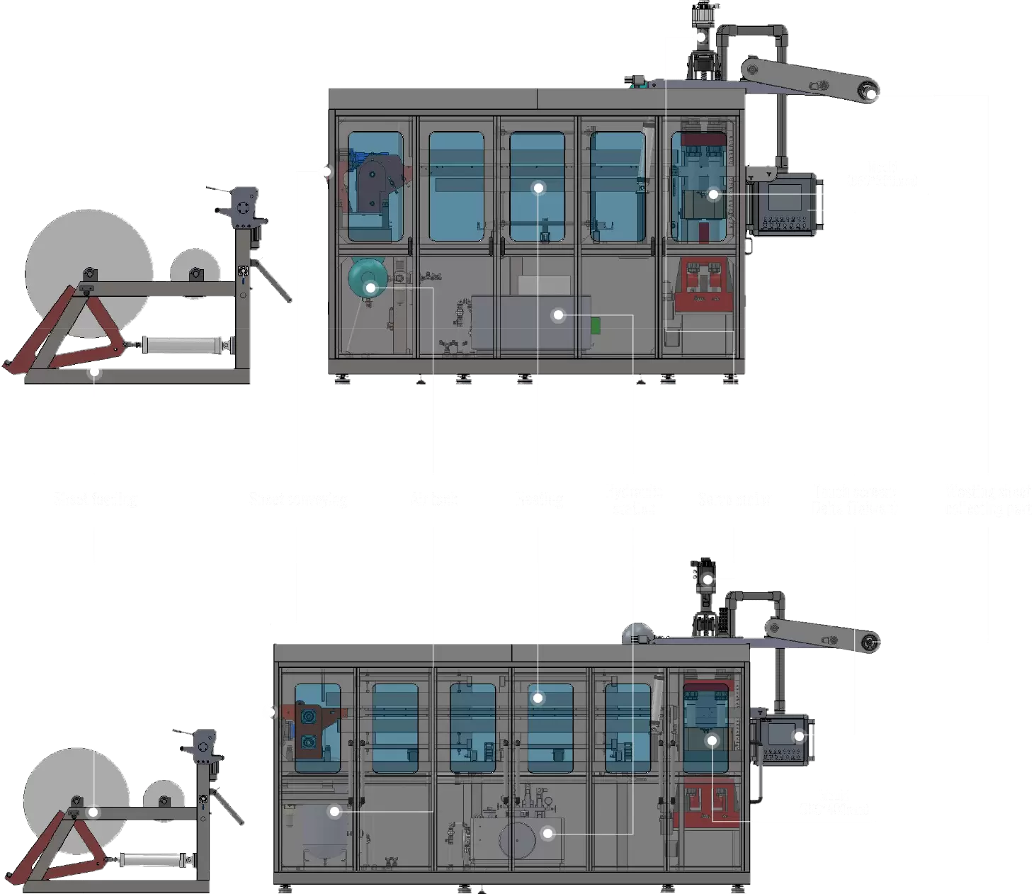 เซอร์โวมอเตอร์แบบยืดหดของ YASKAWA (ประเทศญี่ปุ่น) ควบคุมความเร็วของแม่พิมพ์บนและล่าง ซึ่งสามารถรักษาความแข็งแรงที่สม่ำเสมอเพื่อให้แน่ใจว่าความหนาด้านล่างของแต่ละถ้วยเท่ากัน และเซอร์