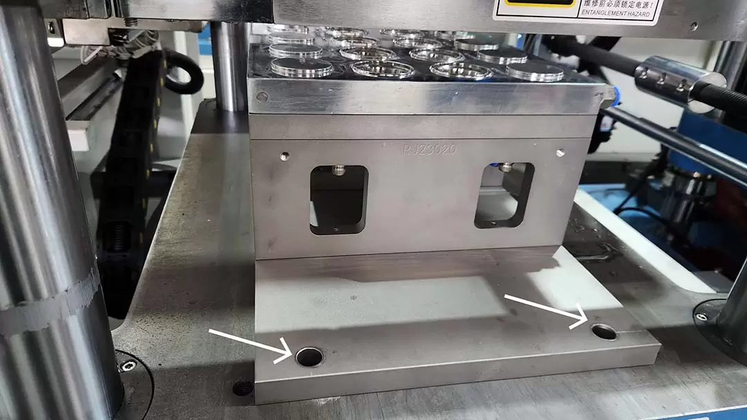 สถานีการเจาะ: แม่พิมพ์จะขับเคลื่อนการเจาะเพื่อกดลงอย่างรวดเร็ว และเจาะรูในผลิตภัณฑ์พลาสติกผ่านแม่พิมพ์เจาะ