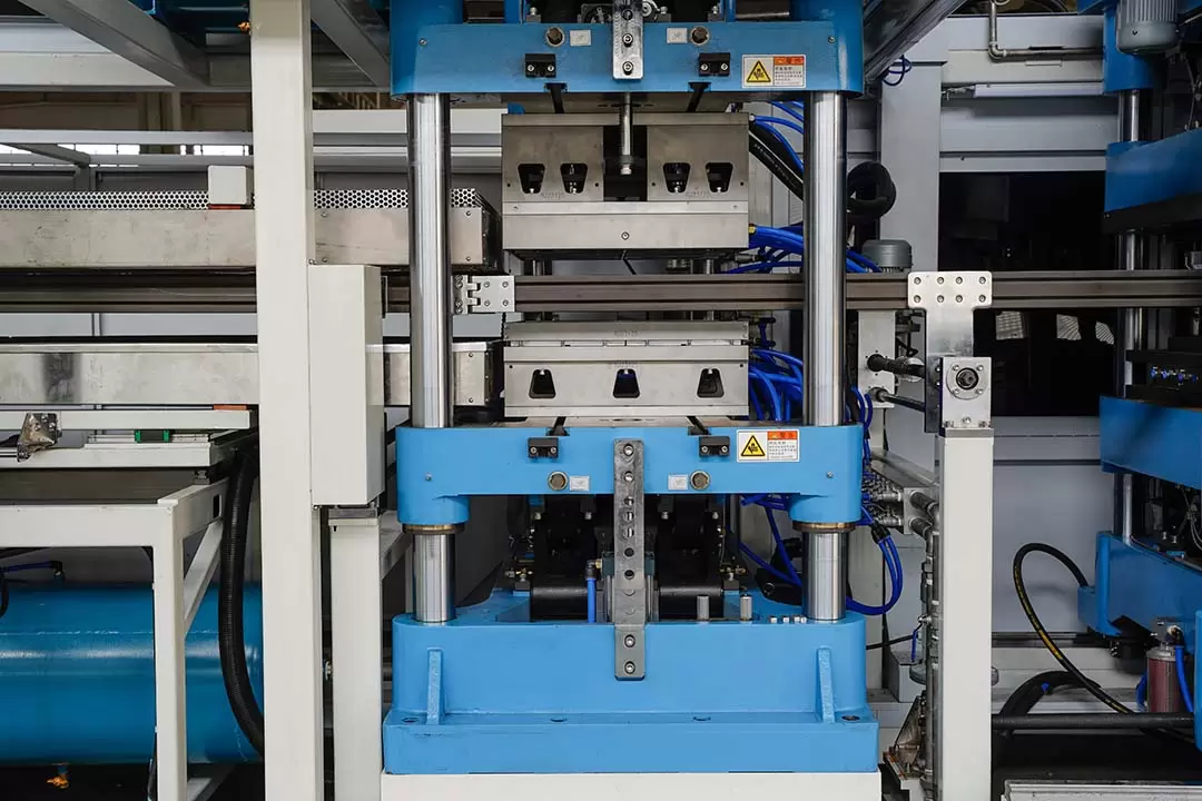 ระบบการขึ้นรูปประกอบด้วยแม่พิมพ์บน แม่พิมพ์ล่าง และอุปกรณ์ขึ้นรูปด้วยสูญญากาศหรือแรงดัน หลังจากแผ่นที่ได้รับความร้อนเข้าสู่พื้นที่ขึ้นรูปแล้ว แม่พิมพ์บนและล่างจะปิดเข้าด้วยกันอย่างรวดเร็ว และแผ่นจะถูกยืดหรือบีบอัดให้เป็นรูปร่างแม่พิมพ์ผ่านการดูดสูญญากาศหรือแรงดันเพื่อสร้างรูปร่างผลิตภัณฑ์ที่ต้องการ ในระหว่างกระบวนการนี้ พารามิเตอร์การขึ้นรูป (เช่น แรงดัน เวลา ฯลฯ) สามารถตั้งค่าได้อย่างแม่นยำผ่านระบบควบคุมเพื่อตอบสนองความต้องการในการขึ้นรูปผลิตภัณฑ์ที่แตกต่างกัน
