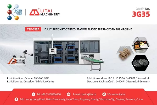 ในครั้งนี้ บริษัท Hangzhou Shiteng Machinery Co., Ltd. ได้รับเชิญให้เข้าร่วมงานนิทรรศการพลาสติกและยางระดับนานาชาติ "K Times" ที่เมืองดุสเซลดอร์ฟ ประเทศเยอรมนี ผลิตภัณฑ์ที่ LITAI จัดแสดงในครั้งนี้ ได้แก่ เครื่องขึ้นรูปด้วยความร้อน 3 สถานี TTF-520A เครื่องอัดอากาศ เครื่องทำความเย็น ถังลม