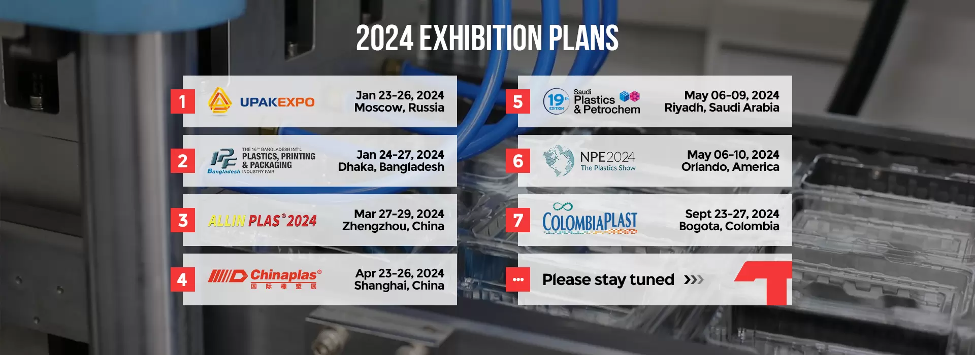 ปี 2023 กำลังจะสิ้นสุดลง ในช่วงปลายปี 2023 Litai Machinery มีแผนที่จะเข้าร่วมงานแสดงสินค้าในปี 2024 โดยอิงจากข้อมูลงานแสดงสินค้าและเค้าโครงการวางตำแหน่งตลาดโลกของเรา รวมถึงการวิเคราะห์ข้อมูลความตั้งใจของลูกค้า เรามีแผนที่จะเพิ่มจำนวนผู้จัดแสดงสินค้าในต่างประเทศในปีหน้า แผนงานดังต่อไปนี้: